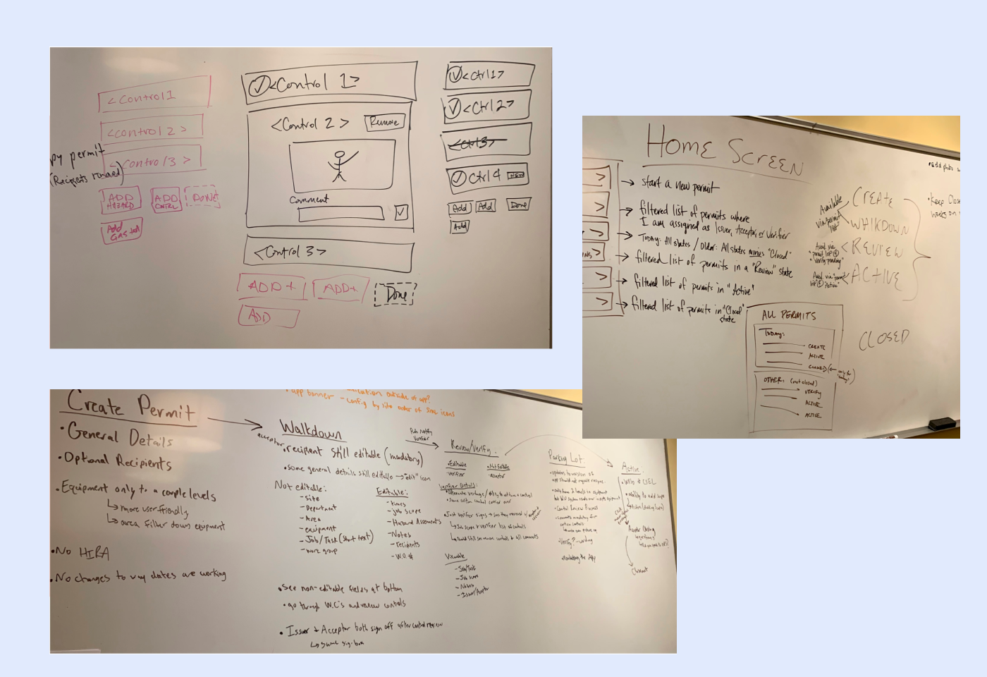 We had a week long design and development workshop with this client to better understand the intricacies of what they were looking for and the needs of their users. They brought in people who would be actually using it which allowed us to do user research and begin to white board up some ideas.